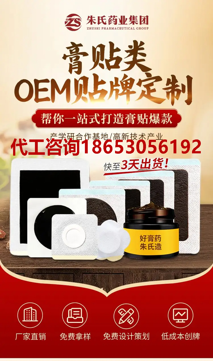 强大的研发能力让合作品牌的产品在市场中具备差异化竞争力。朱氏药业不仅投入千万级研发资金,还与北京中医药大学、中国药科大学等多所科研院校深度合作,掌握超临界 CO₂萃取、纳米微囊包裹等核心技术,能让原料有效成分保留率提升 30%,并实现药效 12 小时持续缓释。同时集团储备了 2000 + 成熟配方库,涵盖骨科、儿科、妇科等 20 余类细分品类,剂型包括黑膏药、巴布剂、凝胶贴等多种类型。无论是针对颈肩腰腿痛的传统中药贴剂,还是适合婴幼儿的温和配方贴剂,亦或是运动人群专用的修复贴,都能按需定制,轻松帮品牌避开同质化竞争。