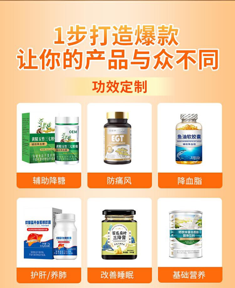 剂型覆盖全面:支持片剂、胶囊、粉剂、软糖、茶包、液体饮品等全剂型定制,满足直播带货中不同场景和人群需求。例如,针对电竞人群的护眼需求,研发团队开发出口感清爽的护眼软糖,深受年轻消费者喜爱。