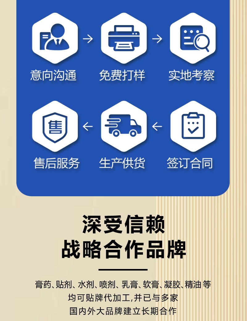 山东朱氏药业膏药OEM代加工从提供配方到产品送检合格完成出货,一般需经过以下关键步骤: