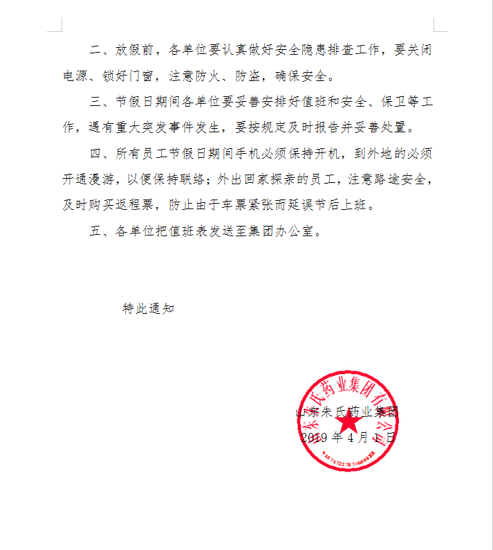 朱氏药业清明节放假通知