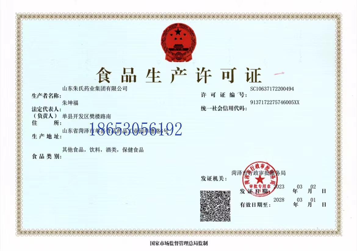 - 合规生产:获得 食品用洗涤剂生产许可证,标志着 山东朱氏药业集团的生产能力符合国家相关标准。