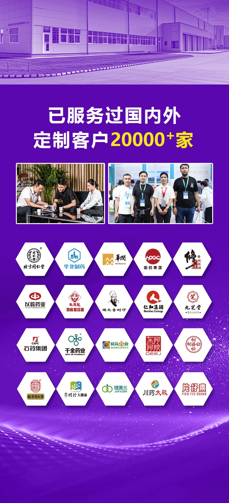 为修正药业、同仁堂、北京制药、白云山制药、福瑞达美业等知名品牌提供代工服务,累计服务客户超300家,涵盖医药连锁、电商品牌、大健康企业等多元领域。