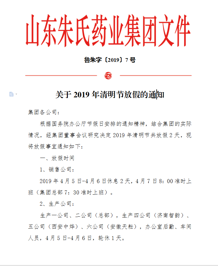 朱氏药业清明节放假通知