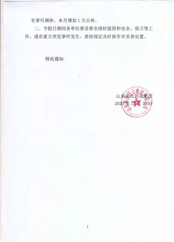 山东朱氏药业集团春节放假通知