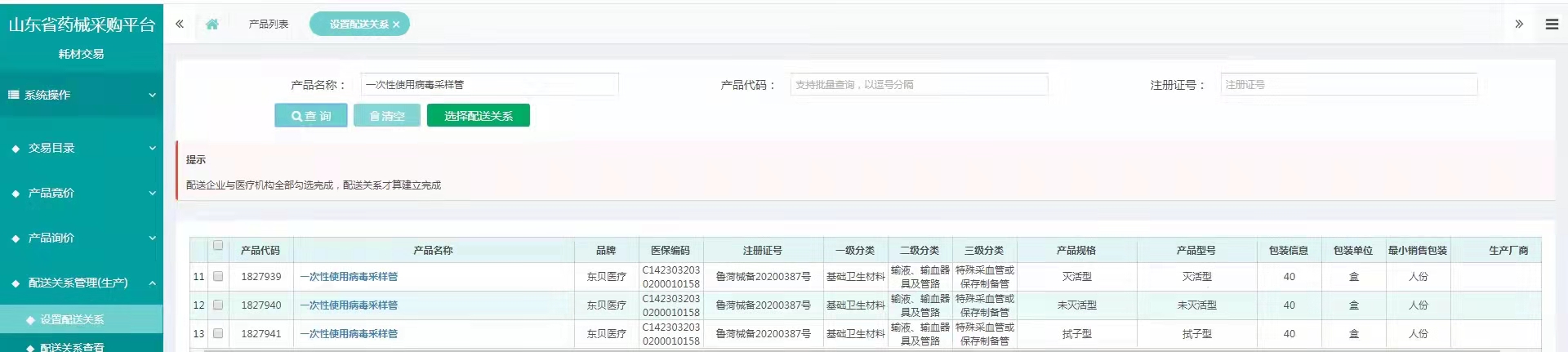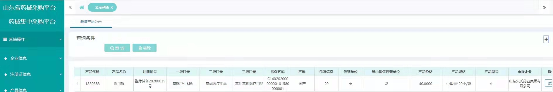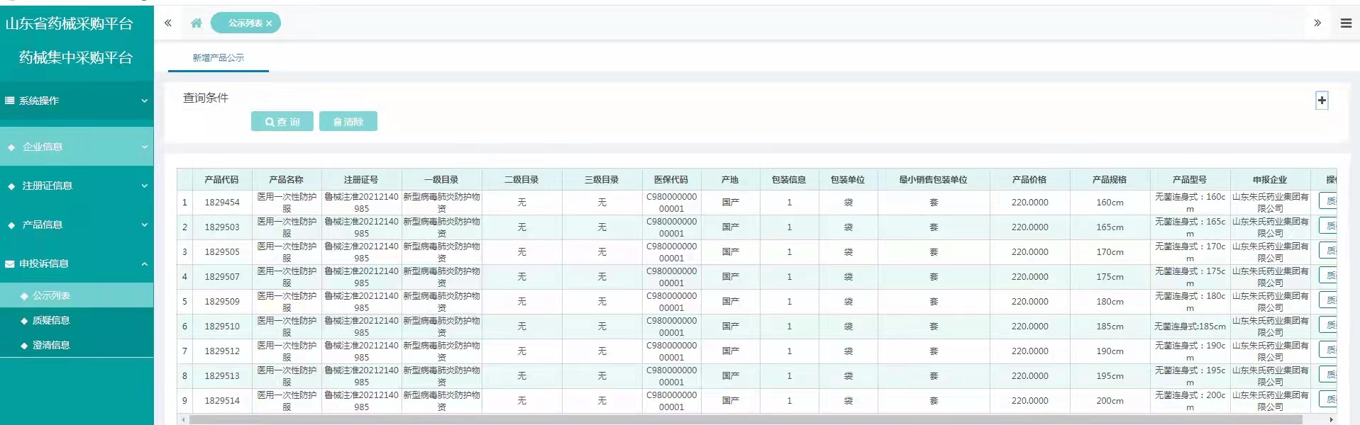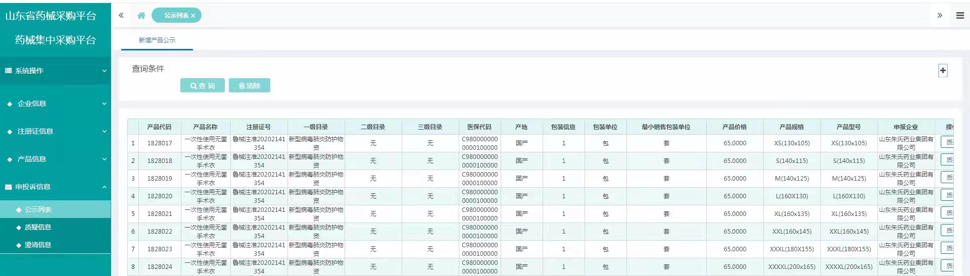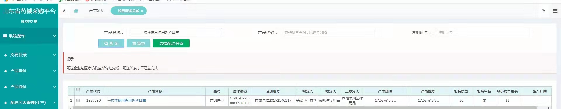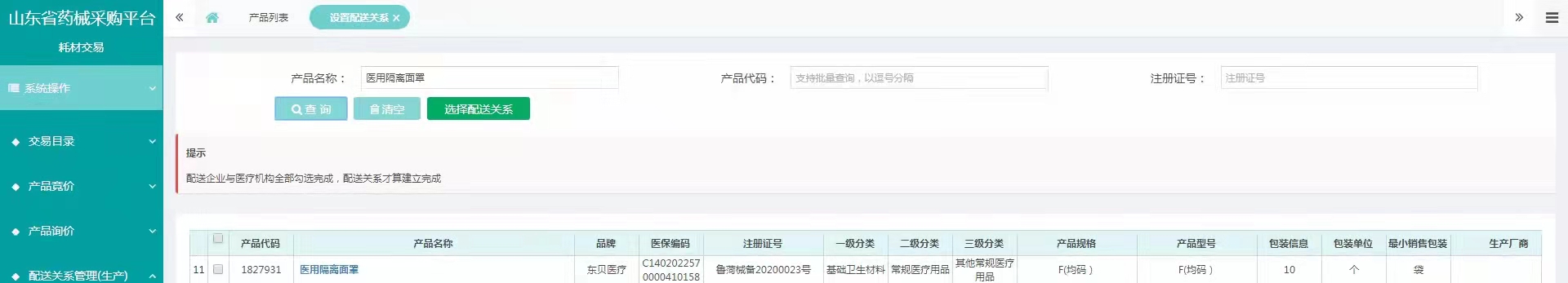 山东省防疫物资挂网产品