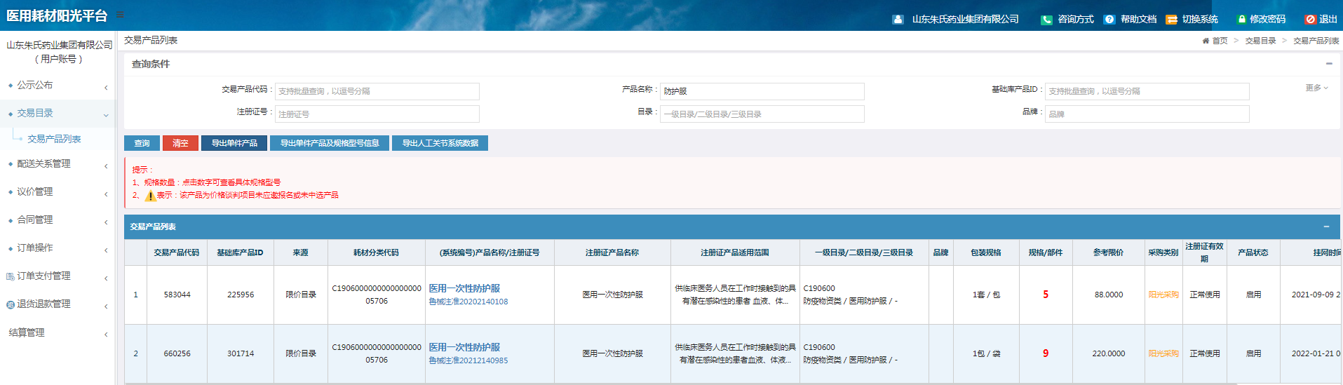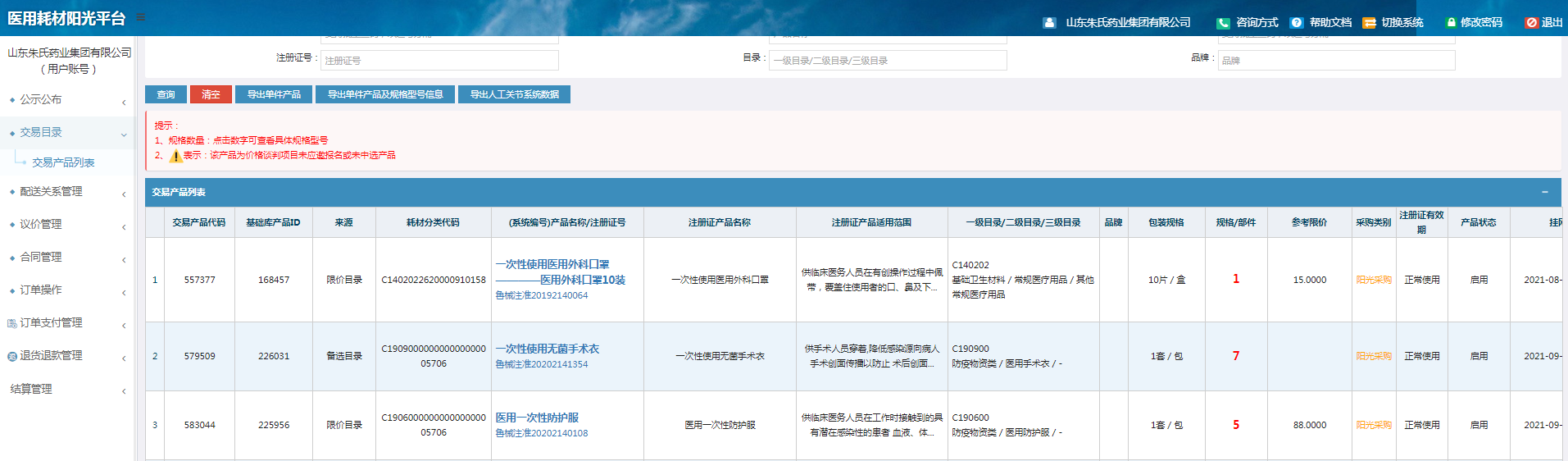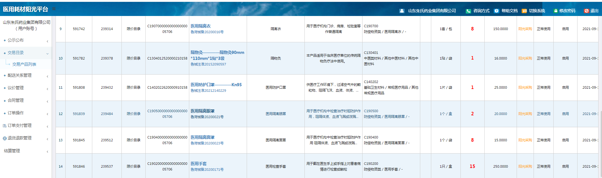 湖北省防疫物资挂网产品