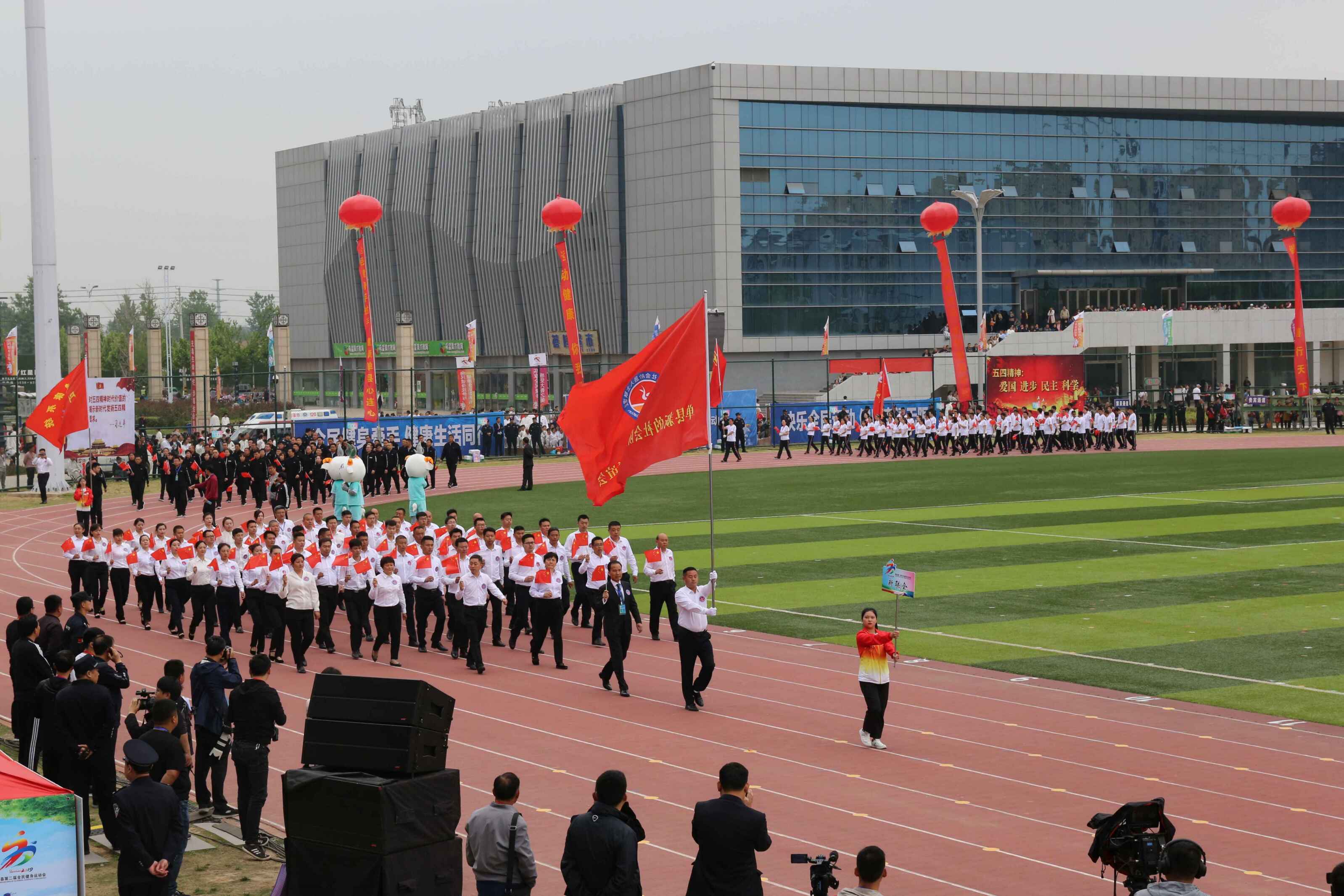 本届全民健身运动会,来自全县党政机关、企事业单位、乡镇(街道)及社会团体的41支代表方队依次入场,