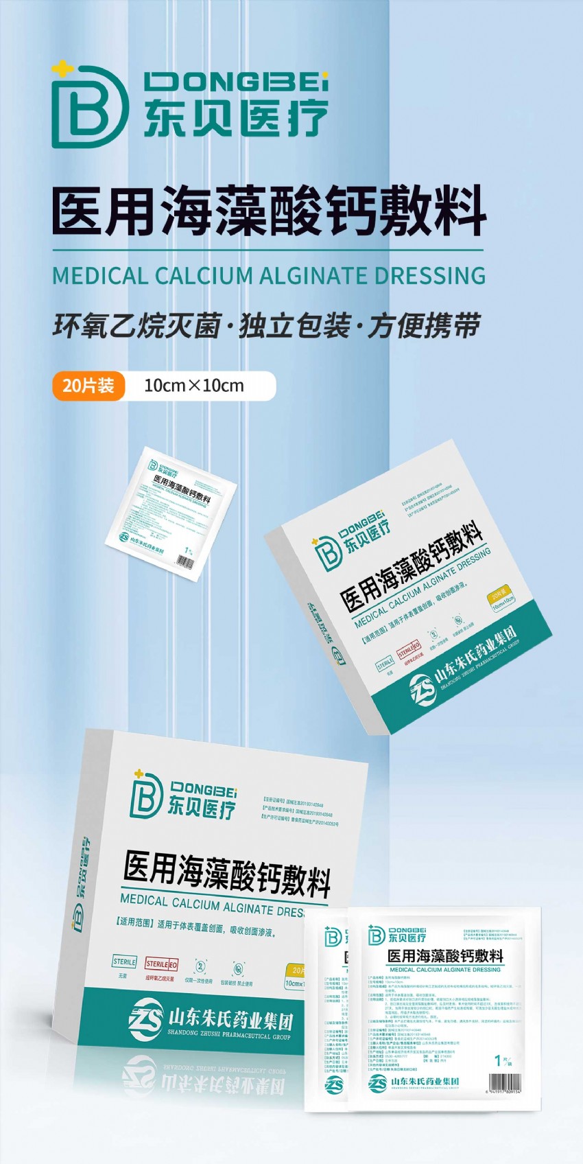 安全性:海藻酸钙敷料是一种天然高分子材料,对人体无毒性,可安全使用。它经环氧乙烷灭菌后应无菌,一次性使用。